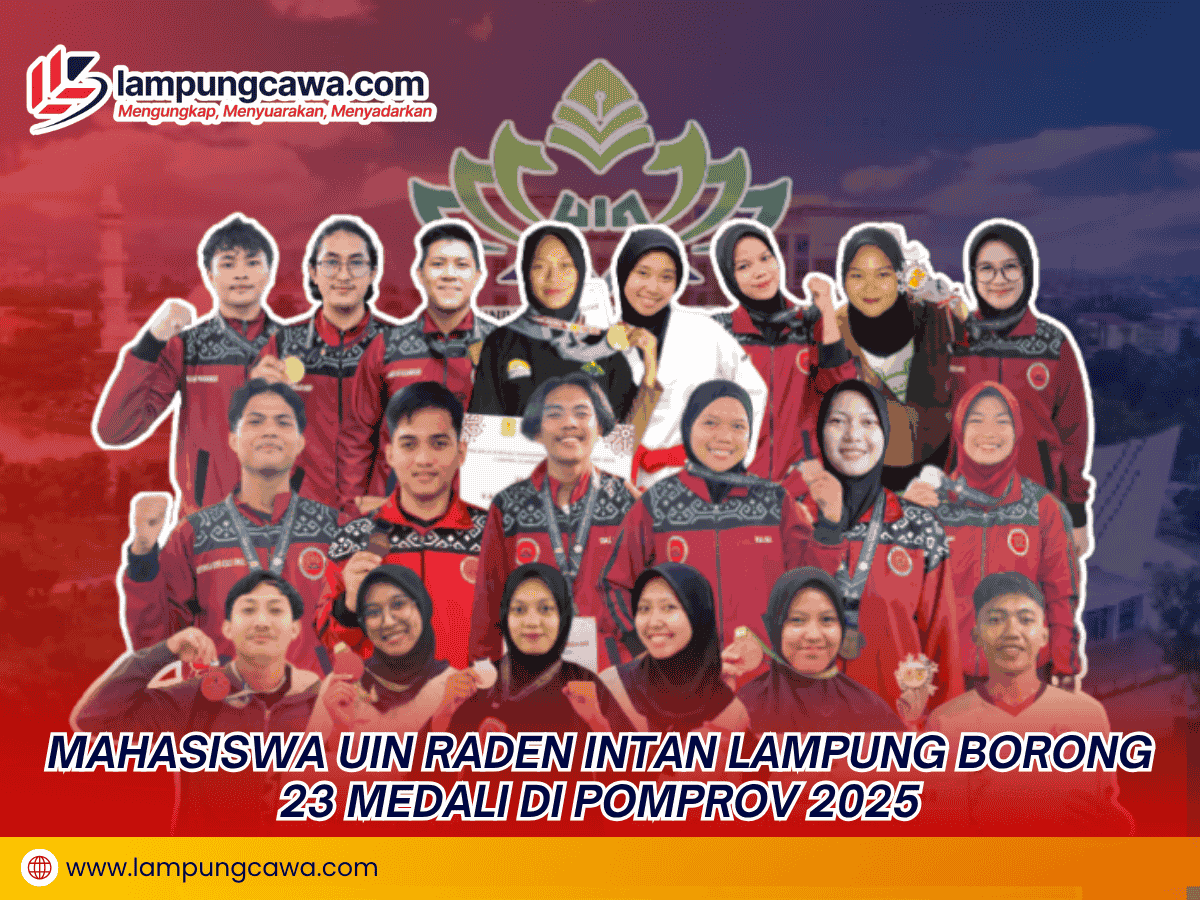 lampungcawa – BANDAR LAMPUNG, Kontingen Universitas Islam Negeri (UIN) Raden Intan Lampung berhasil menorehkan prestasi gemilang dalam ajang Pekan Olahraga Mahasiswa Provinsi (Pomprov) Lampung 2025 yang digelar sepanjang Juli ini. Total 23 medali berhasil diraih, terdiri dari tujuh emas, lima perak, tujuh perunggu, dan empat penghargaan Harapan 1.