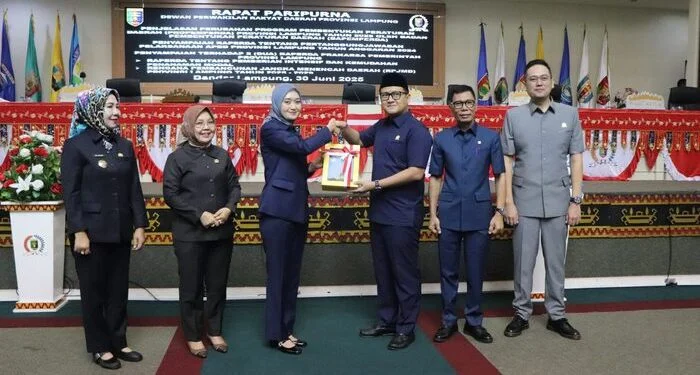 Lampungcawa, Bandarlampung – Rapat Paripurna DPRD Provinsi Lampung dipimpin oleh Ketua DPRD Provinsi Lampung Ahmad Giri Akbar, bertempat di Ruang Sidang DPRD Provinsi Lampung, Senin (30/06/2025).