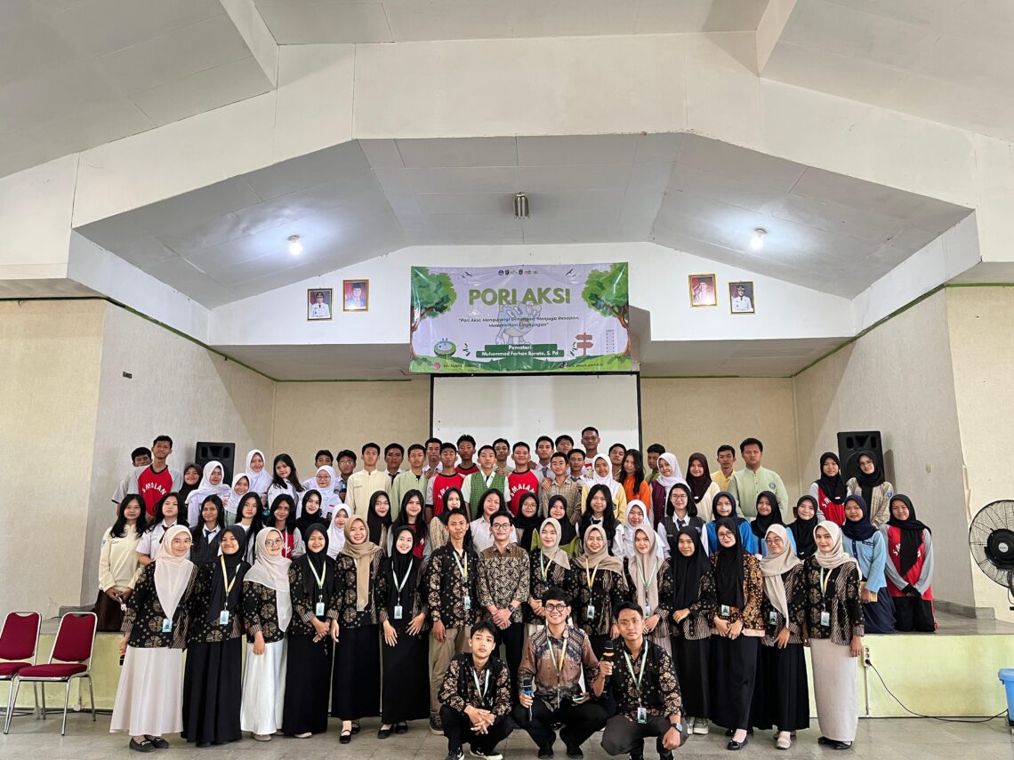 Lampungcawa, Bandar Lampung – Mahasiswa Kuliah Kerja Nyata (KKN) Terintegrasi Universitas Islam Negeri (UIN) Raden Intan Lampung Kelompok 198 PPL 15, di bawah bimbingan dosen pembimbing lapangan Mr. Irawansyah, M.Pd., sukses menggelar sosialisasi edukatif bertajuk “PORI AKSI: Mengurangi Genangan, Menjaga Resapan, Melestarikan Lingkungan!” di SMAN 9 Bandar Lampung, Selasa (12/8/2025).