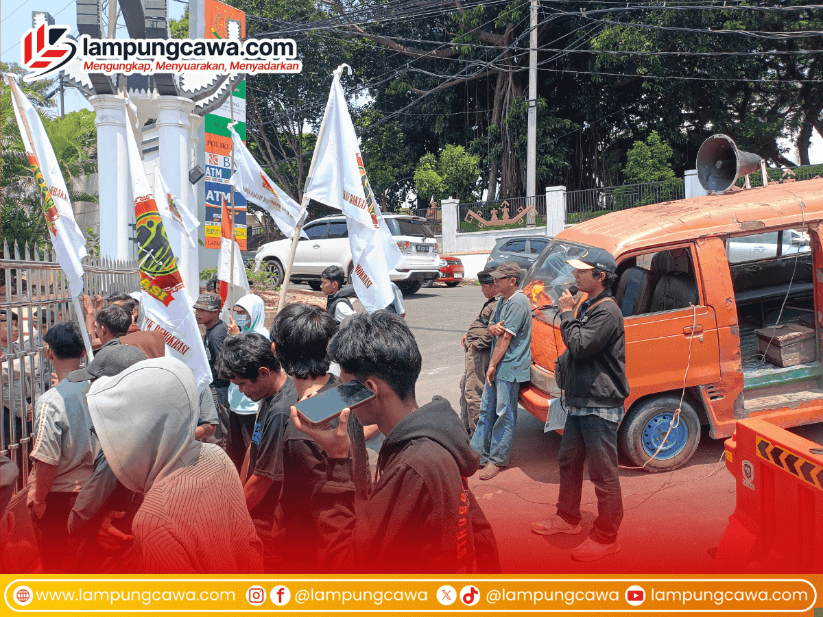 Lampungcawa, Bandarlampung – Aksi damai digelar puluhan aktivis Lembaga Swadaya Masyarakat Gerakan Rakyat Anti Korupsi untuk Demokrasi (GRADASI) di depan Kantor Kejaksaan Tinggi Lampung pada Kamis (9/10/25).